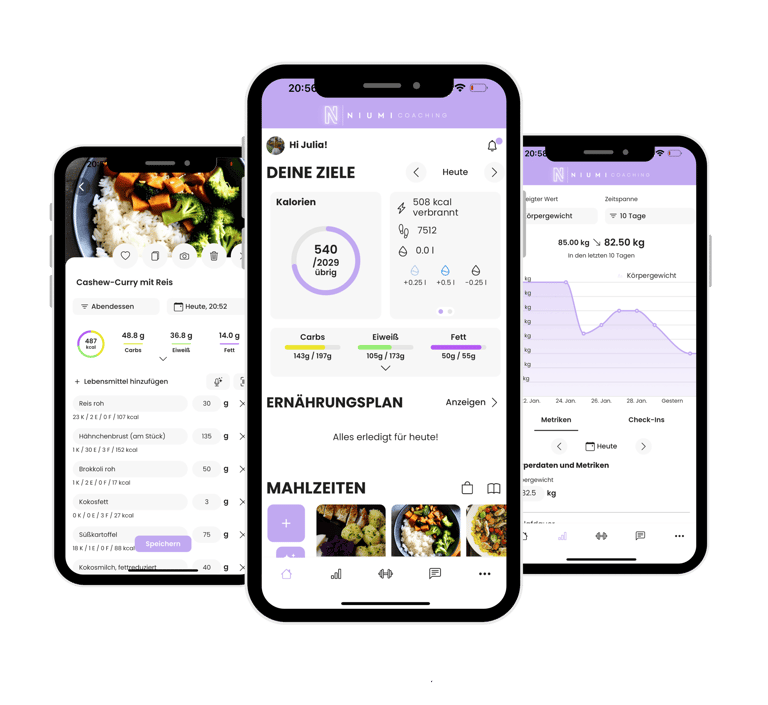 Du möchtest abnehmen, Muskeln aufbauen oder einfach nur gesunde Routinen entwickeln? Mit NIUMI begleite ich dich Schritt für Schritt und arbeite gemeinsam mit dir an deinem individuellen Ziel.