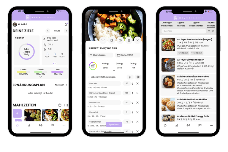 Und das Beste bei meinem Coaching: Egal wann, egal wo, du hast immer alles dabei - in der NIUMI Coaching App.