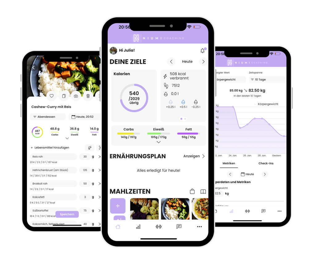 Die NIUMI Membership begleitet dich auf deinem Weg zur besten Version deiner selbst. Trainingspläne, Rezepte & Tracking – alles, was du brauchst, um dran zu bleiben und dein Ziel zu erreichen.