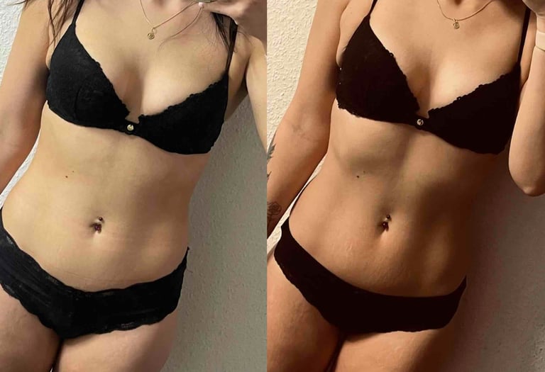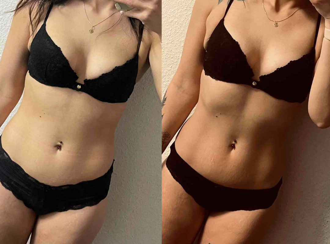 Das Ziel dieser Klientin war es, abzunehmen. Nicht mal 2 Monate waren vergangen und schon waren es 5kg und 14cm Bauchumfang weniger - was ein Unterschied, heftig! 🤩